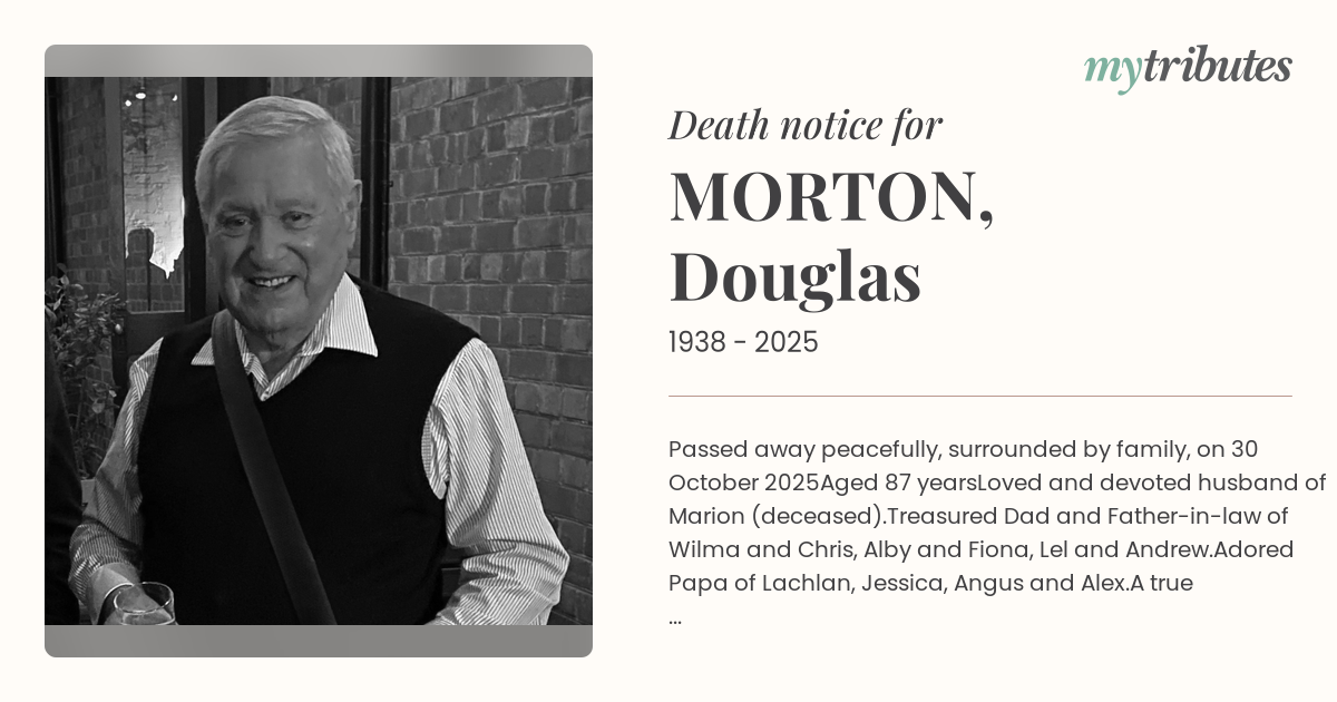 15°CPassed away peacefully, surrounded by family, on 30 October 2025