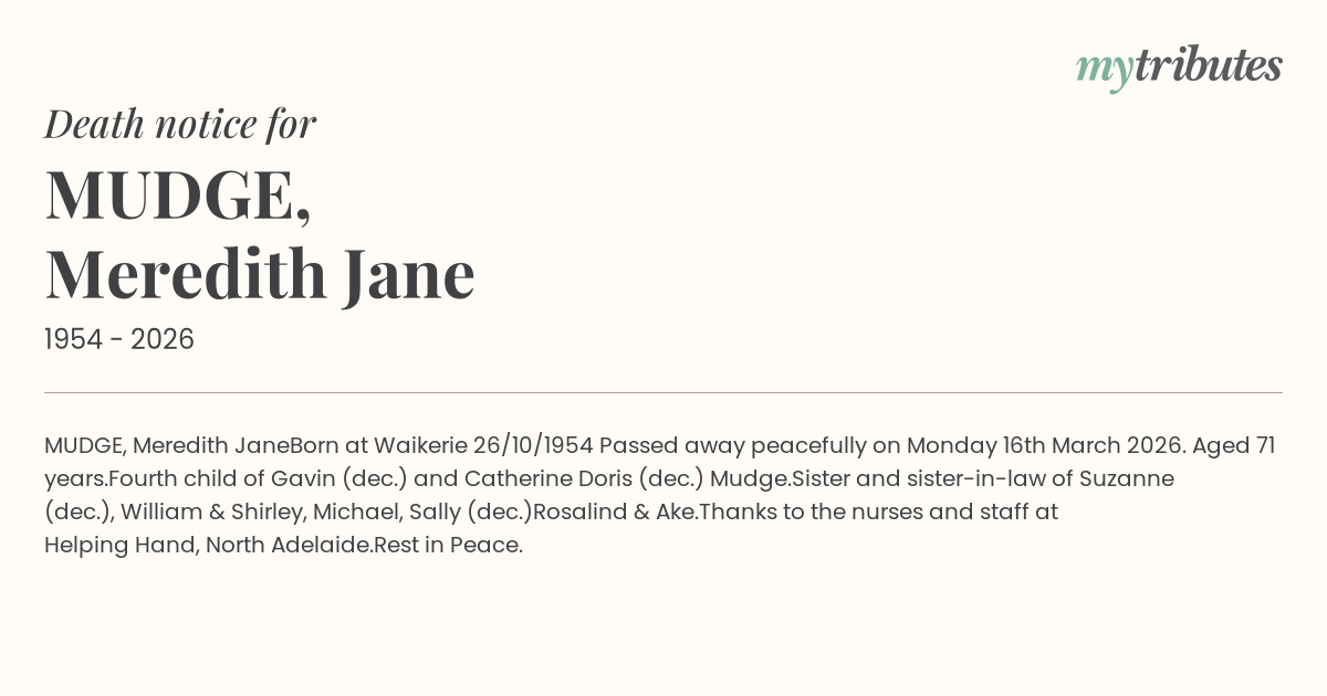 Passed away peacefully on Monday 16th March 2026. Aged 71 years.