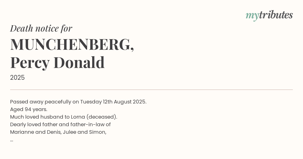 15°CPassed away peacefully on Tuesday 12th August 2025.