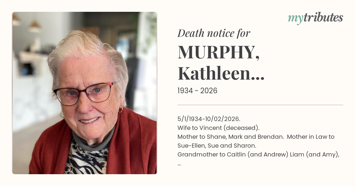 Great grandmother to Poppy, Banjo, Hazel, Keiran, Devin,Tyler, Jaxon and Conor.