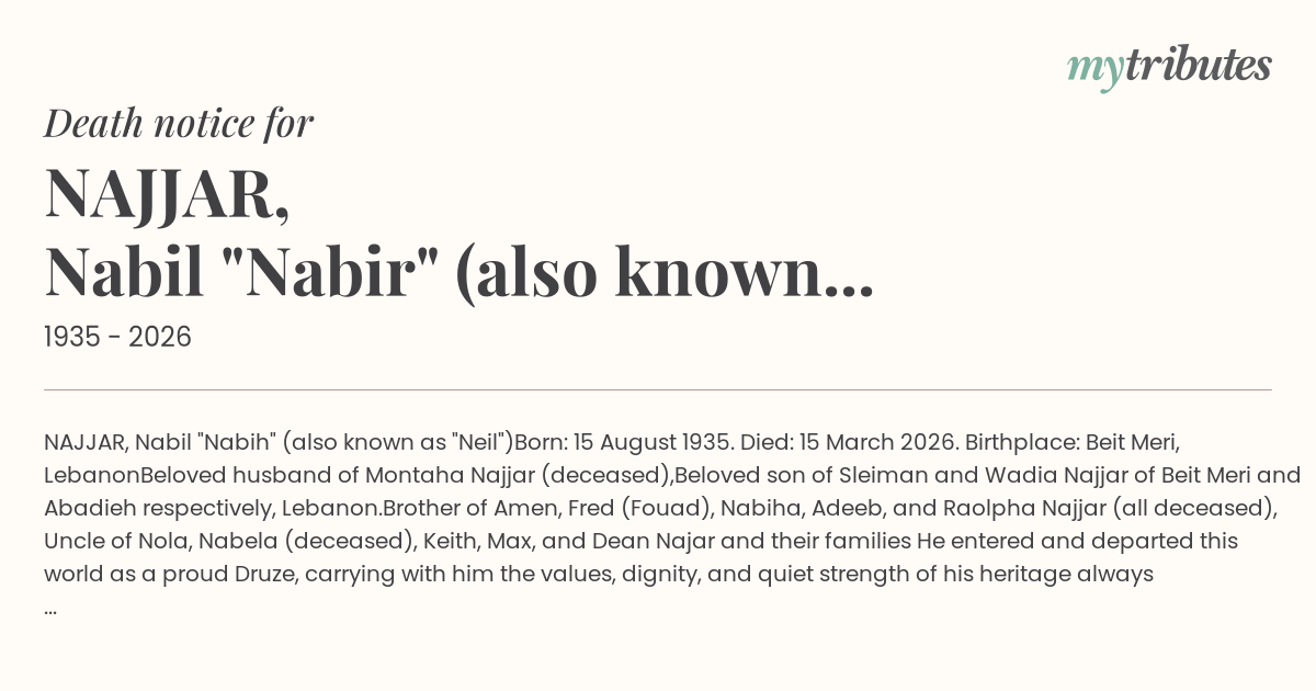 15°CNAJJAR, Nabil "Nabih" (also known as "Neil")