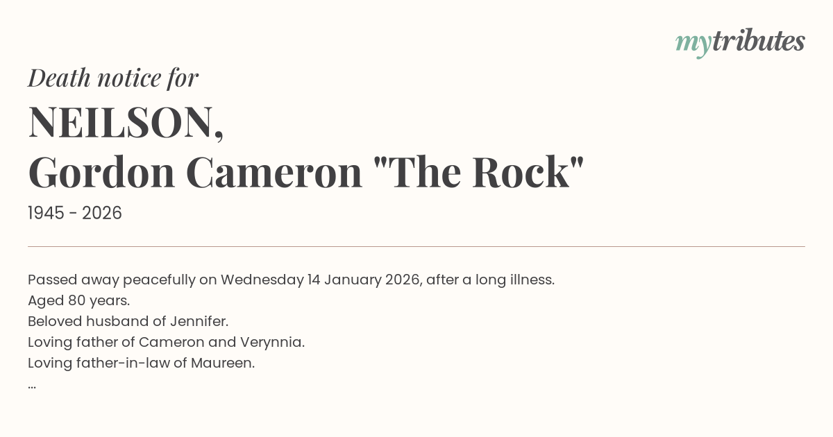 15°CPassed away peacefully on Wednesday 14 January 2026, after a long illness.