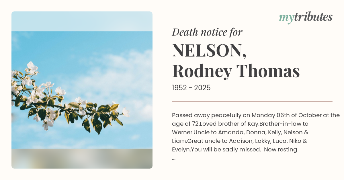 15°CPassed away peacefully on Monday 06th of October at the age of 72.