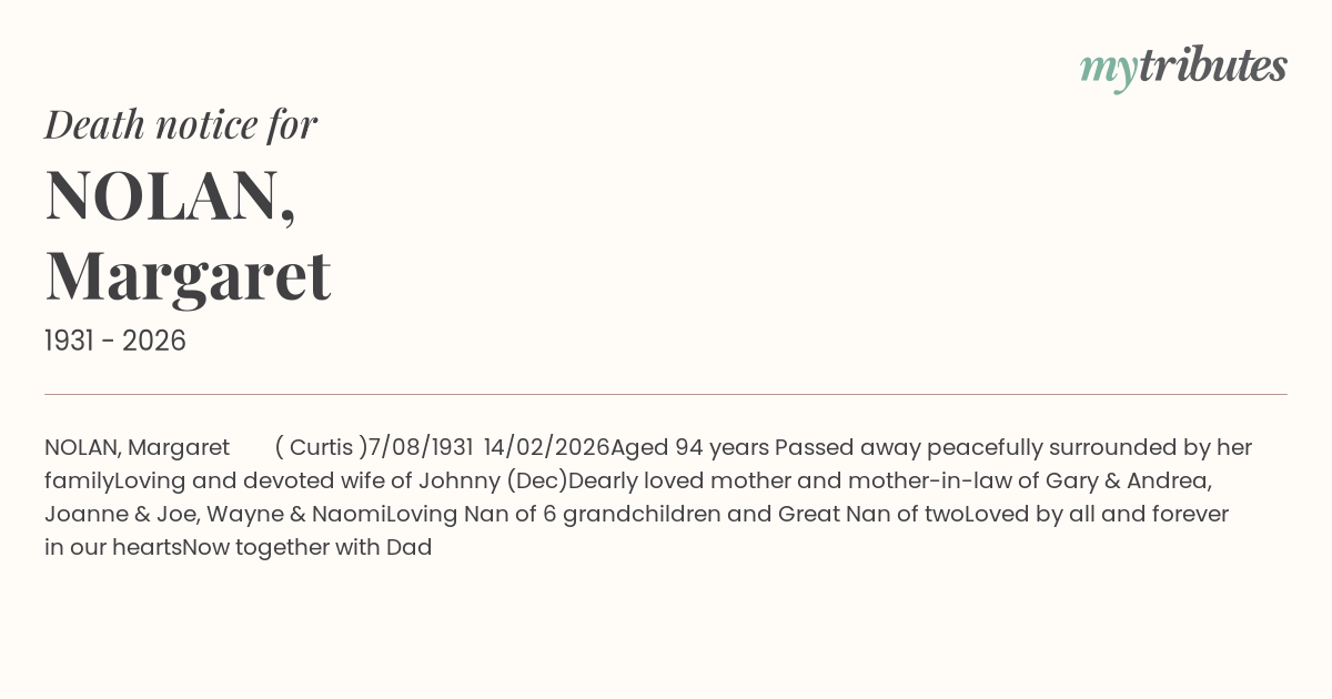 Dearly loved mother and mother-in-law of Gary & Andrea, Joanne & Joe, Wayne & Naomi