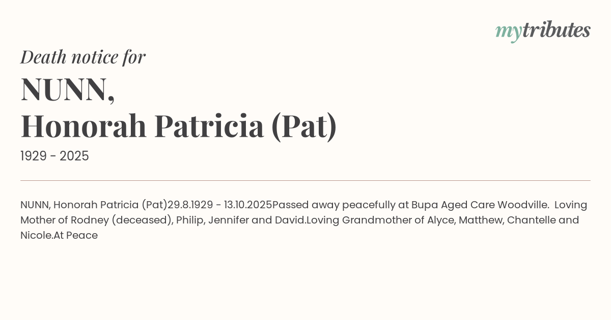 15°CNUNN, Honorah Patricia (Pat)
