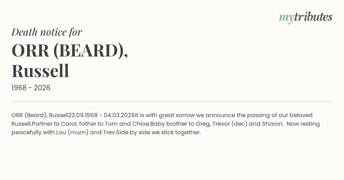 Baby brother to Greg, Trevor (dec) and Sharon. Now resting peacefully with Lou (mum) and Trev.
