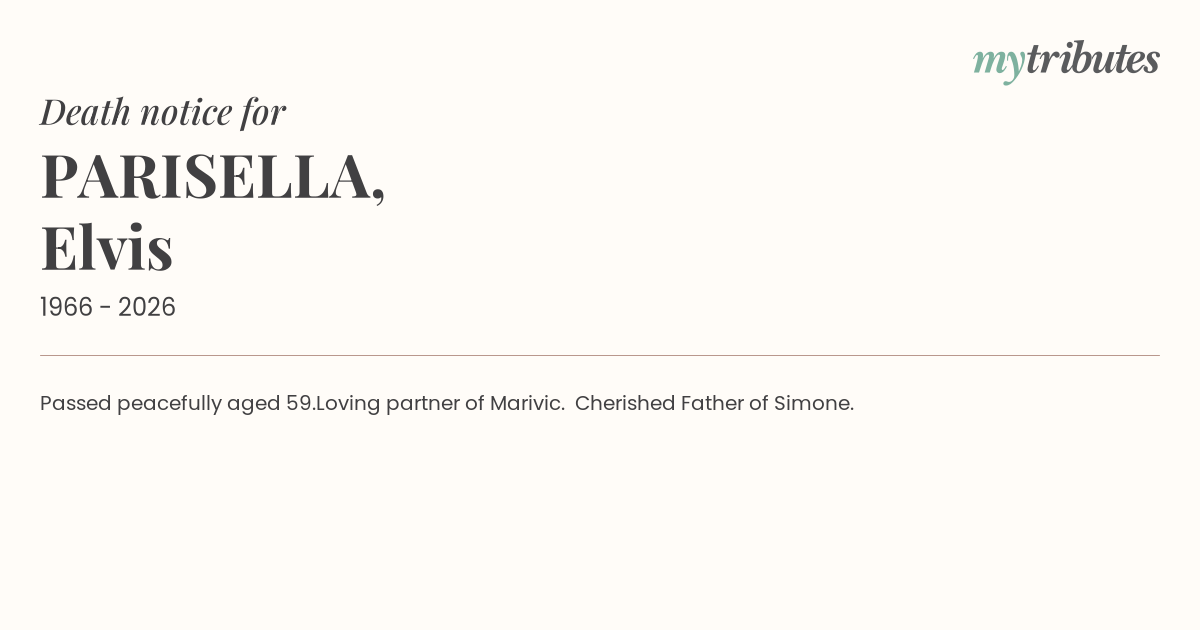 15°CPassed peacefully aged 59.