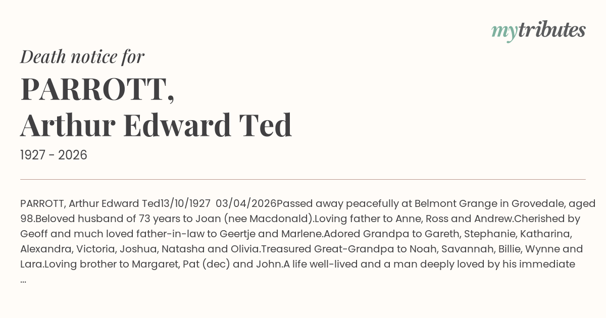 Passed away peacefully at Belmont Grange in Grovedale, aged 98.