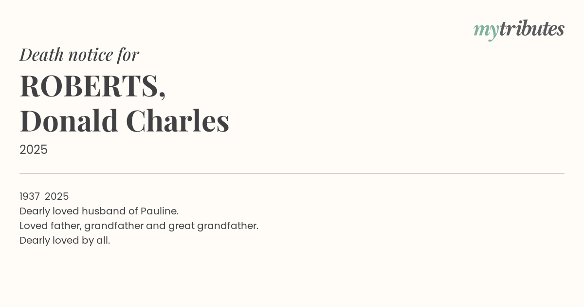 Dearly loved husband of Pauline.