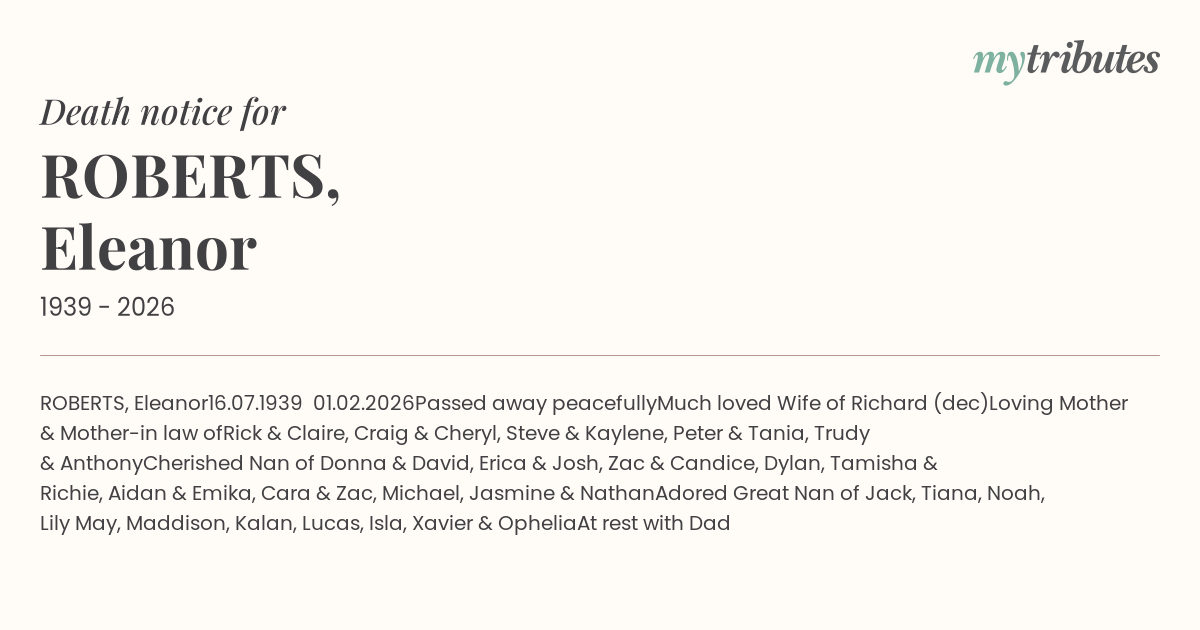 15°CROBERTS, Eleanor