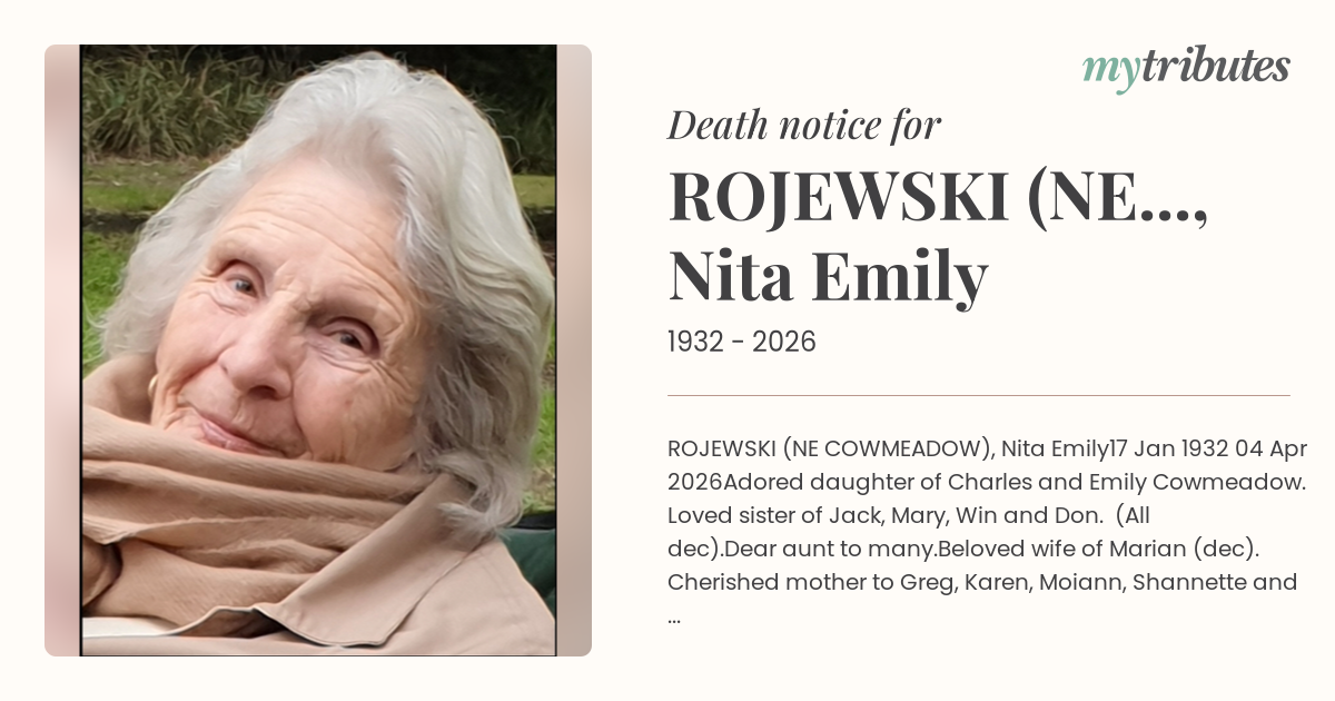 Beloved wife of Marian (dec). Cherished mother to Greg, Karen, Moiann, Shannette and Kim and mother-in-law to Barbara-Jane, John and Neil. Treasured Nanna and Nanny Neet to her eleven grandchildren and 14 great grandchildren.