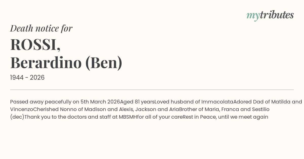 15°CPassed away peacefully on 5th March 2026