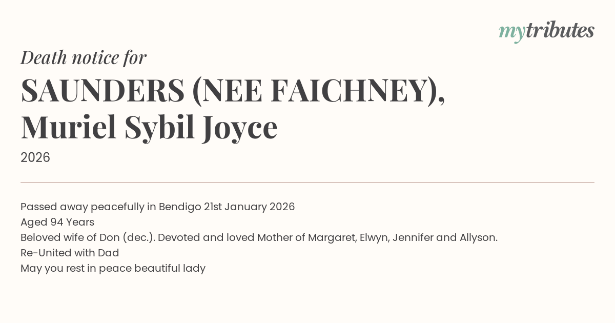 15°CPassed away peacefully in Bendigo 21st January 2026