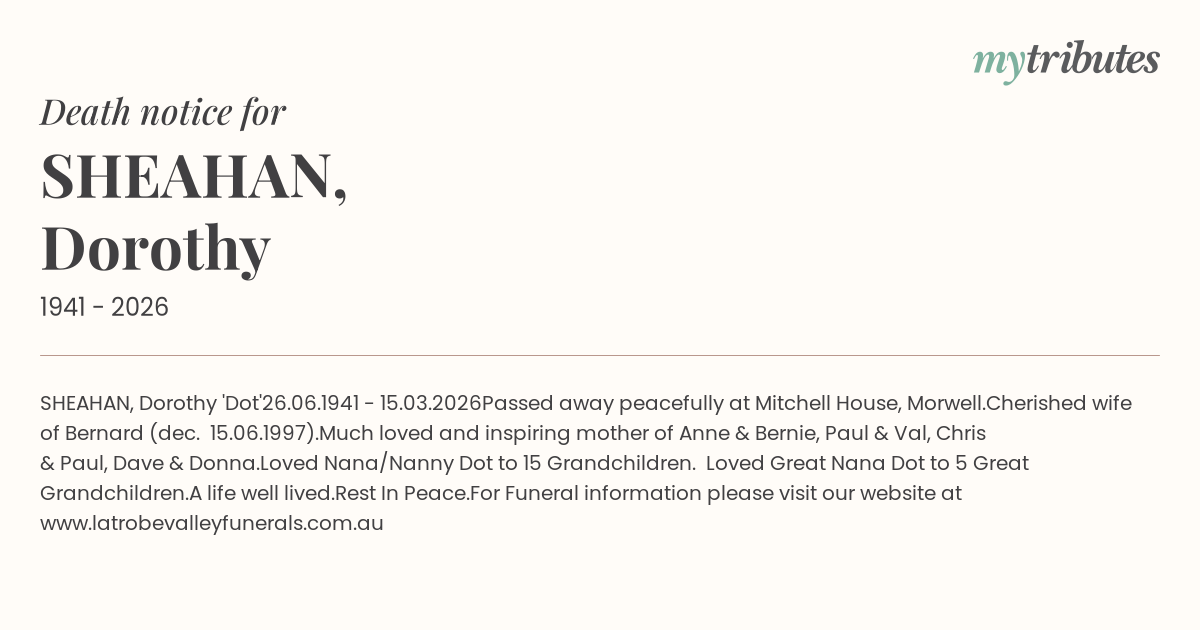 Loved Nana/Nanny Dot to 15 Grandchildren.
