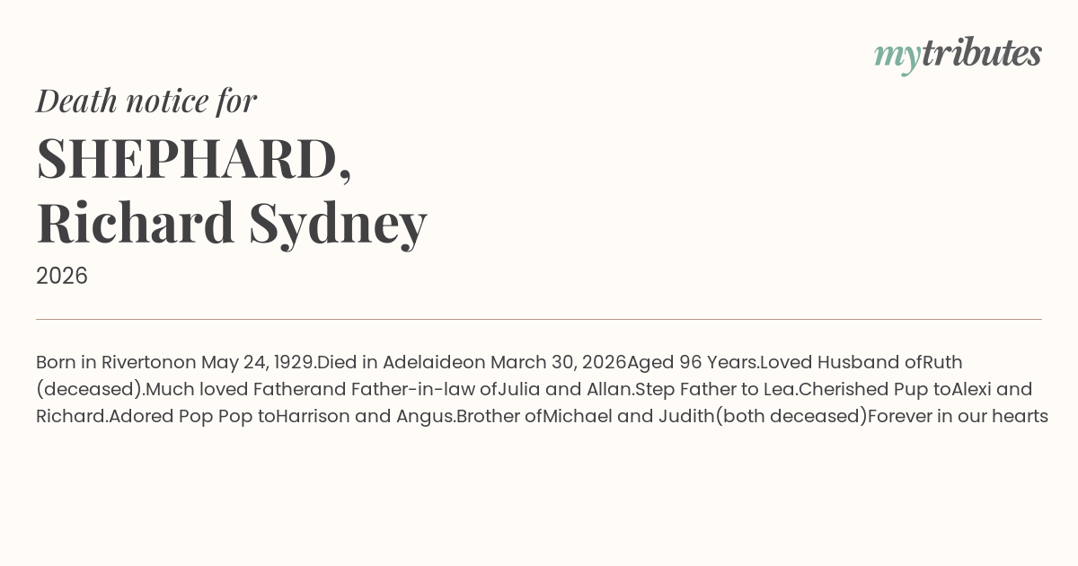 Died in Adelaide