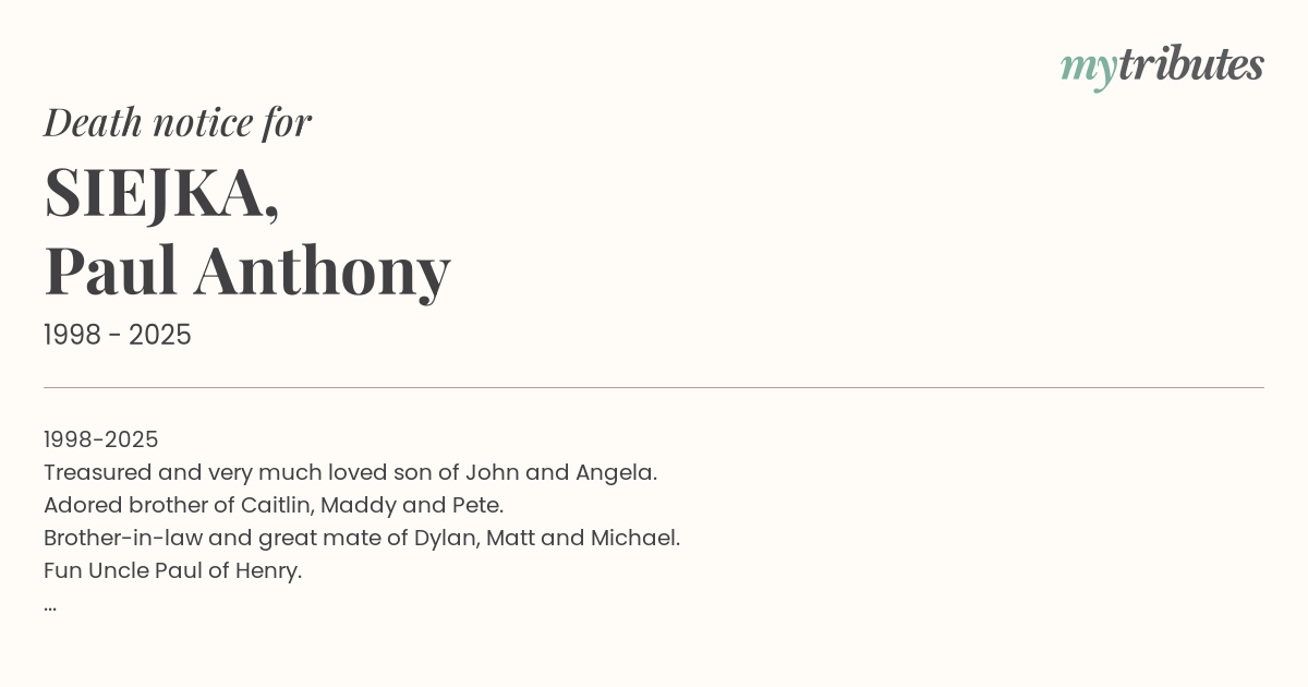 Treasured and very much loved son of John and Angela.