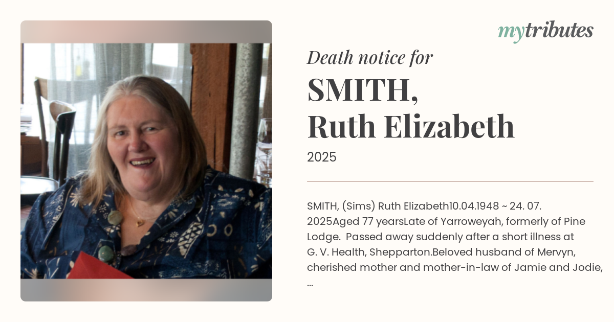 Beloved husband of Mervyn, cherished mother and mother-in-law of Jamie and Jodie, and Lee, dearest grandma of Oliver and Isaac.