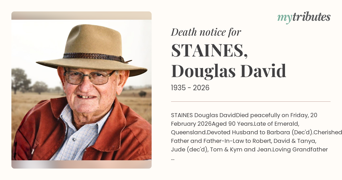 Cherished Father and Father-In-Law to Robert, David & Tanya, Jude (dec'd), Tom & Kym and Jean.