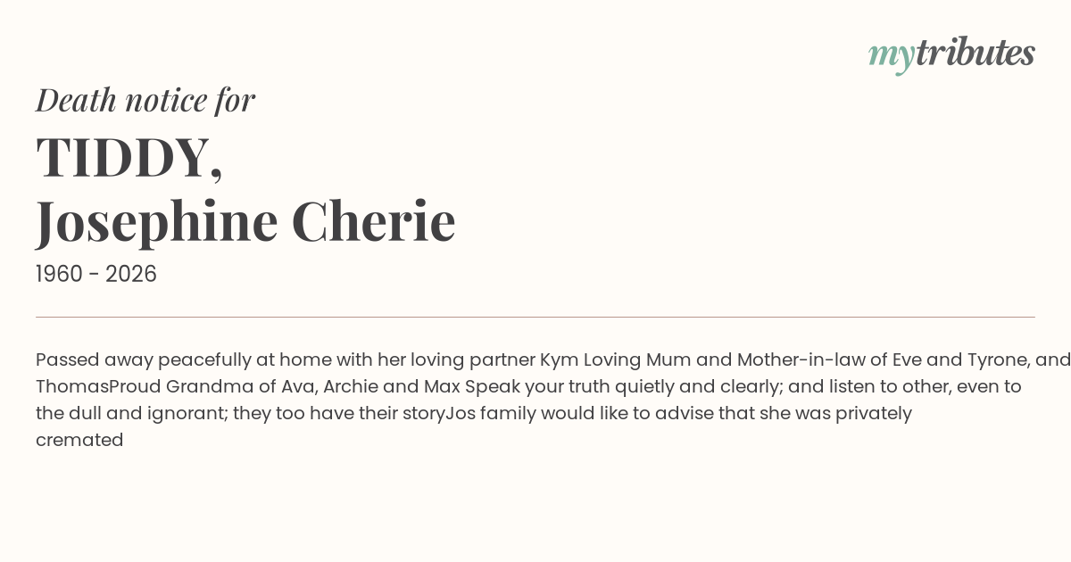Loving Mum and Mother-in-law of Eve and Tyrone, and Thomas