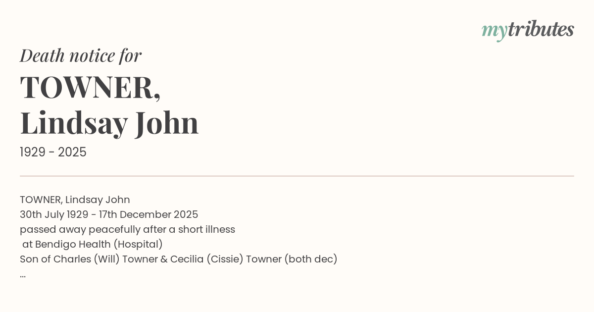 Son of Charles (Will) Towner & Cecilia (Cissie) Towner (both dec)