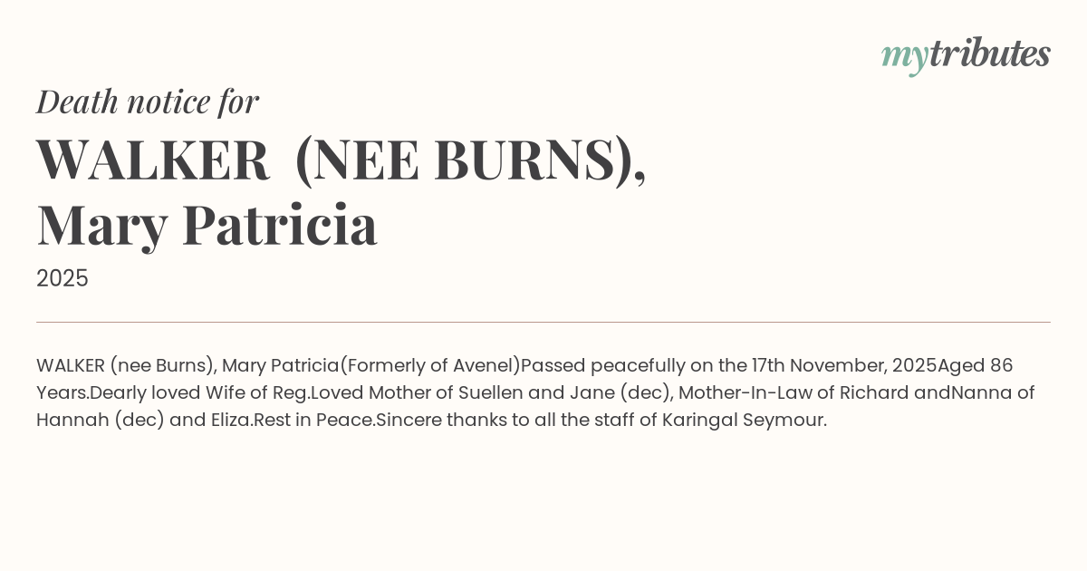 Loved Mother of Suellen and Jane (dec), Mother-In-Law of Richard and