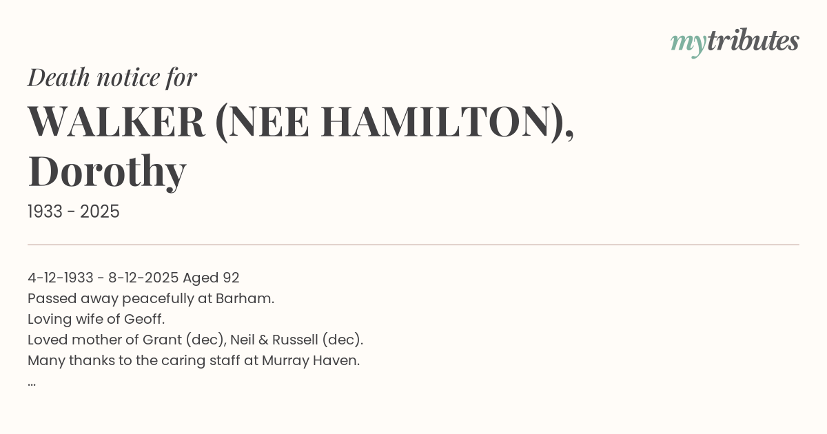 15°C4-12-1933 - 8-12-2025 Aged 92