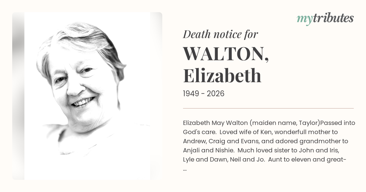 15°CElizabeth May Walton (maiden name, Taylor)