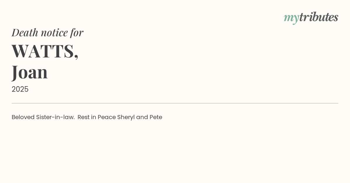 Beloved Sister-in-law. Rest in Peace Sheryl and Pete