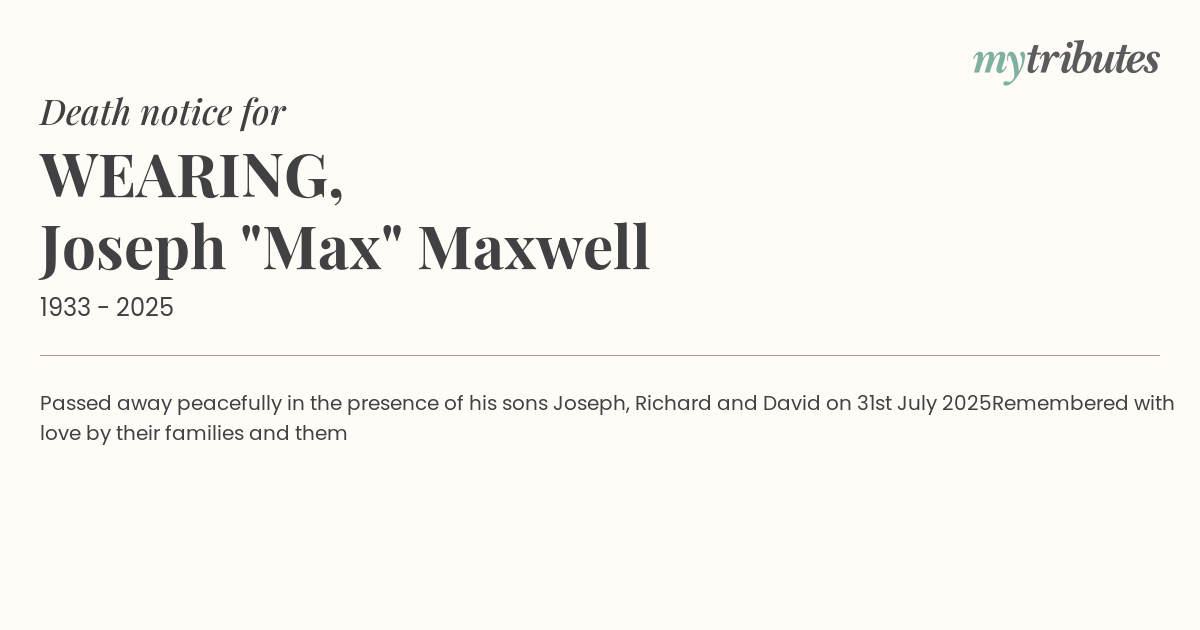 15°CPassed away peacefully in the presence of his sons Joseph, Richard and David on 31st July 2025