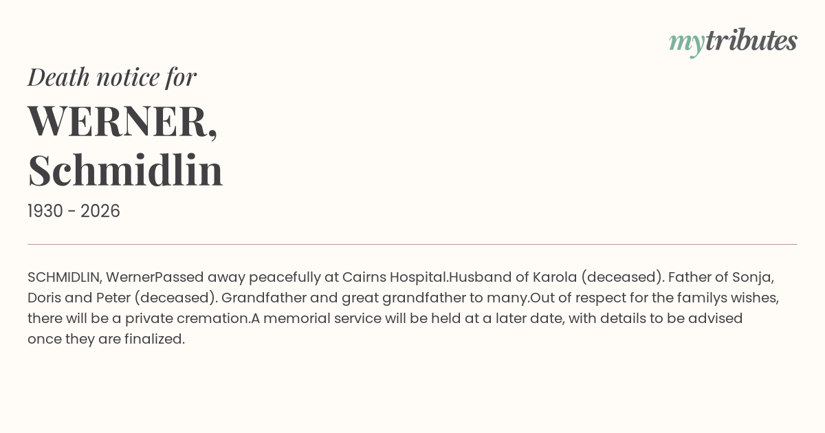 A memorial service will be held at a later date, with details to be advised once they are finalized.