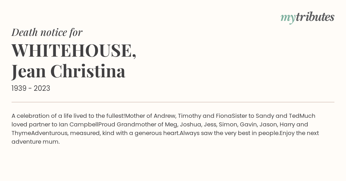 Mother of Andrew, Timothy and Fiona
