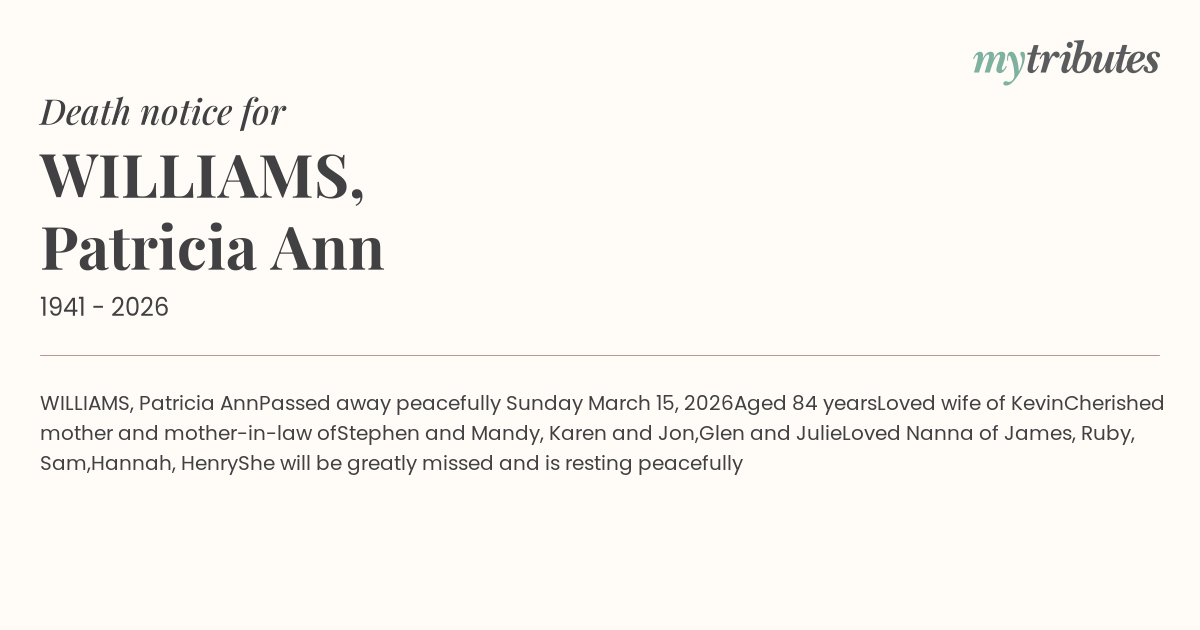 15°CWILLIAMS, Patricia Ann