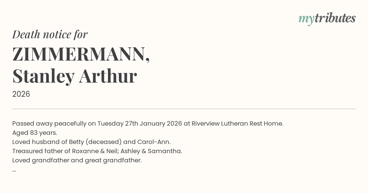 15°CPassed away peacefully on Tuesday 27th January 2026