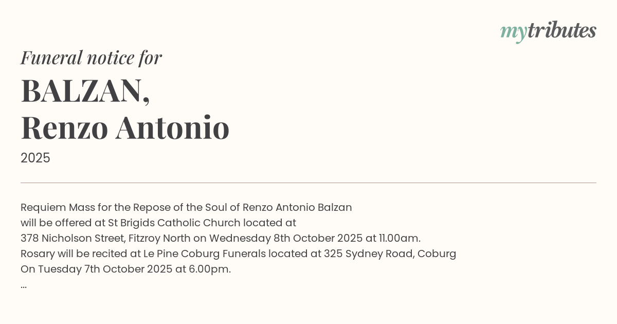 15°CRequiem Mass for the Repose of the Soul of Renzo Antonio Balzan