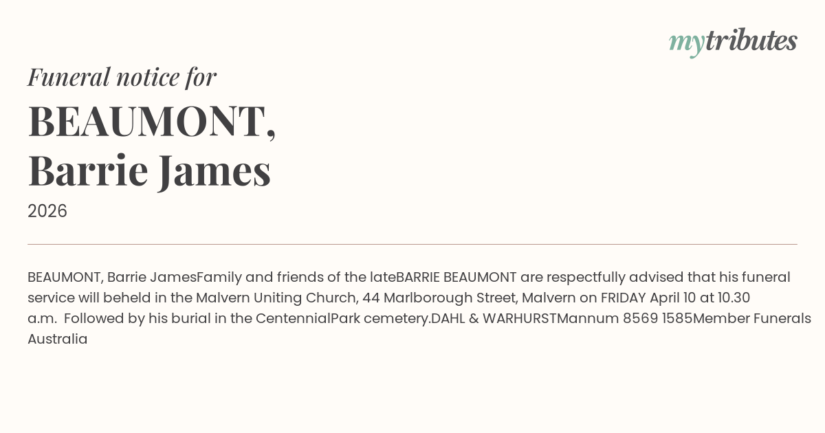 BARRIE BEAUMONT are respectfully advised that