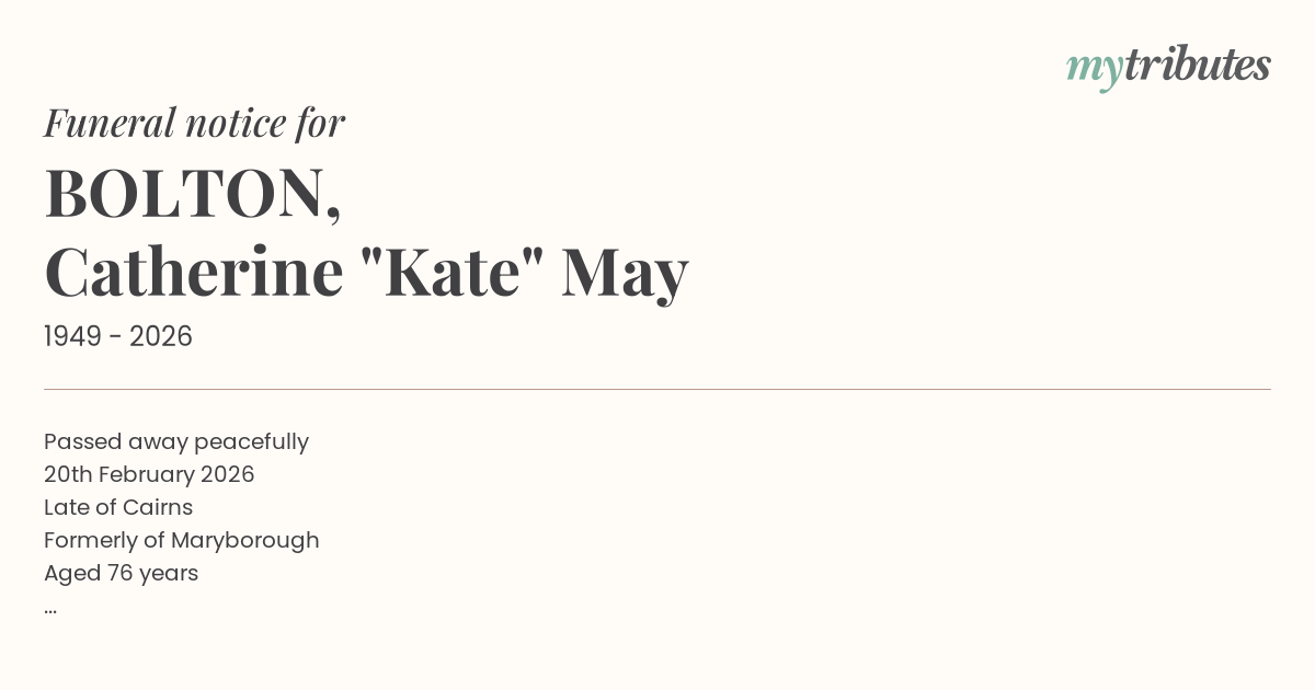 Late of Cairns