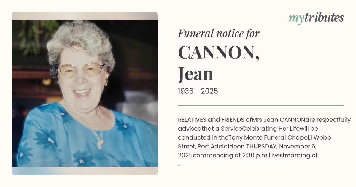 Mrs Jean CANNON