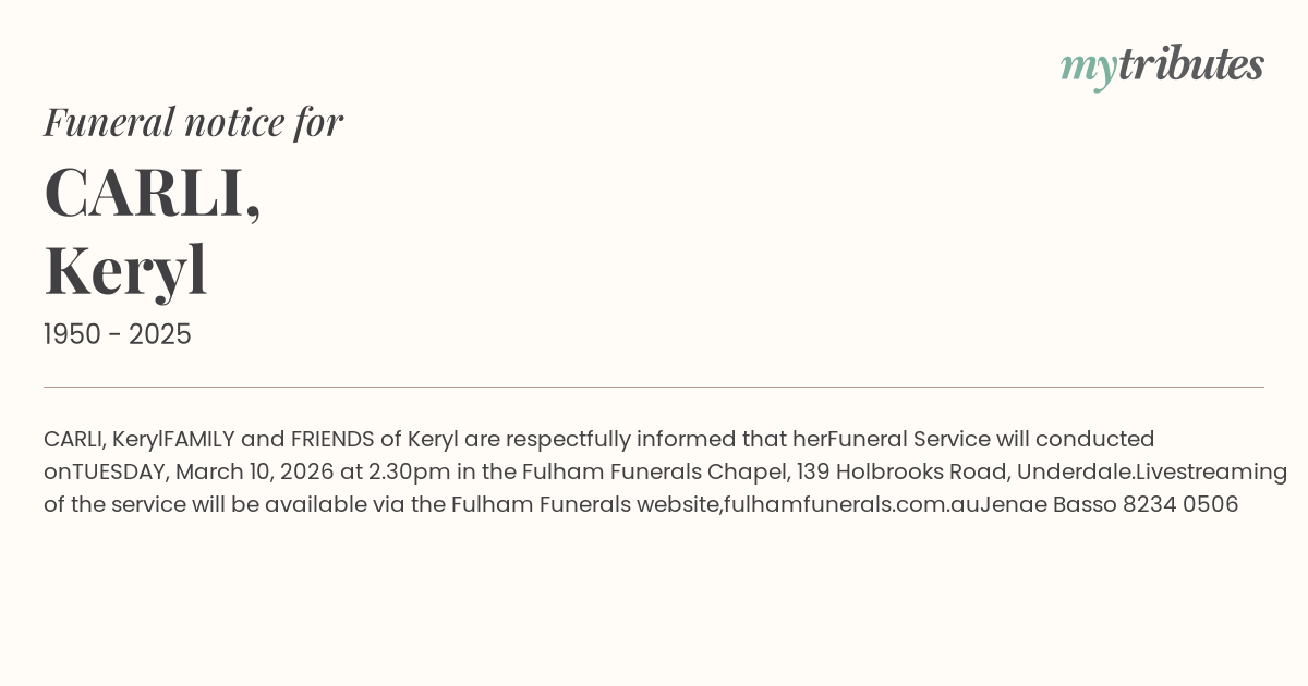 FAMILY and FRIENDS of Keryl are respectfully informed that her