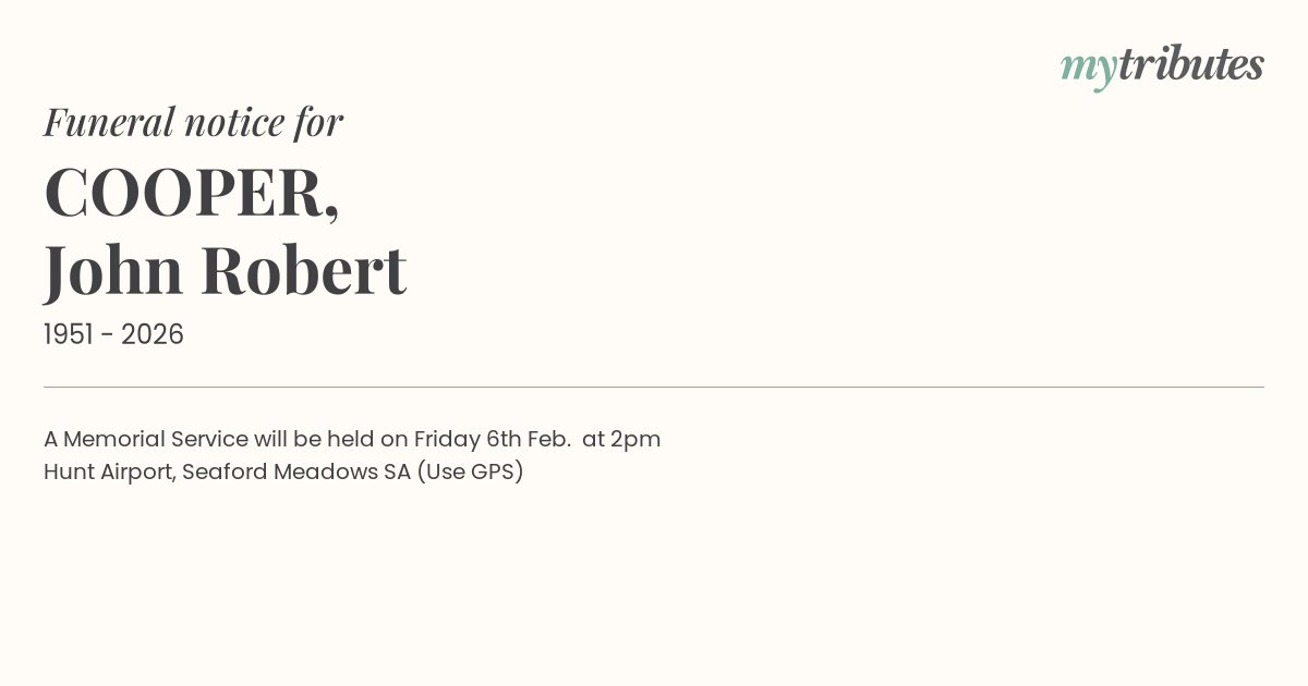 15°CA Memorial Service will be held on Friday 6th Feb. at 2pm