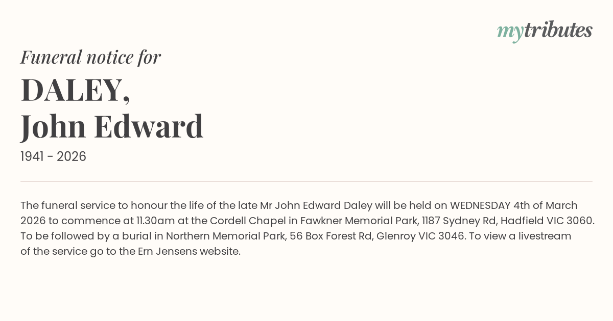 To view a livestream of the service go to the Ern Jensens website.