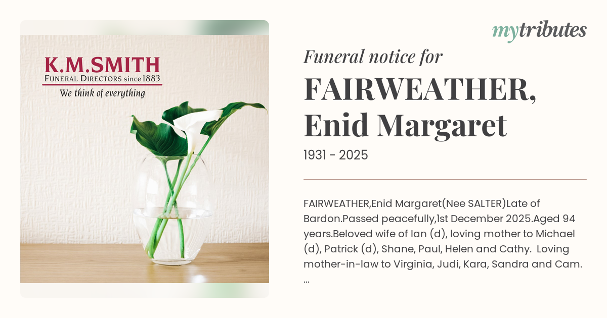 Funeral by : KM Smith Bowen Hills