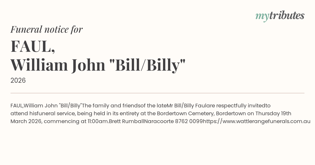 being held in its entirety at the Bordertown Cemetery, Bordertown on