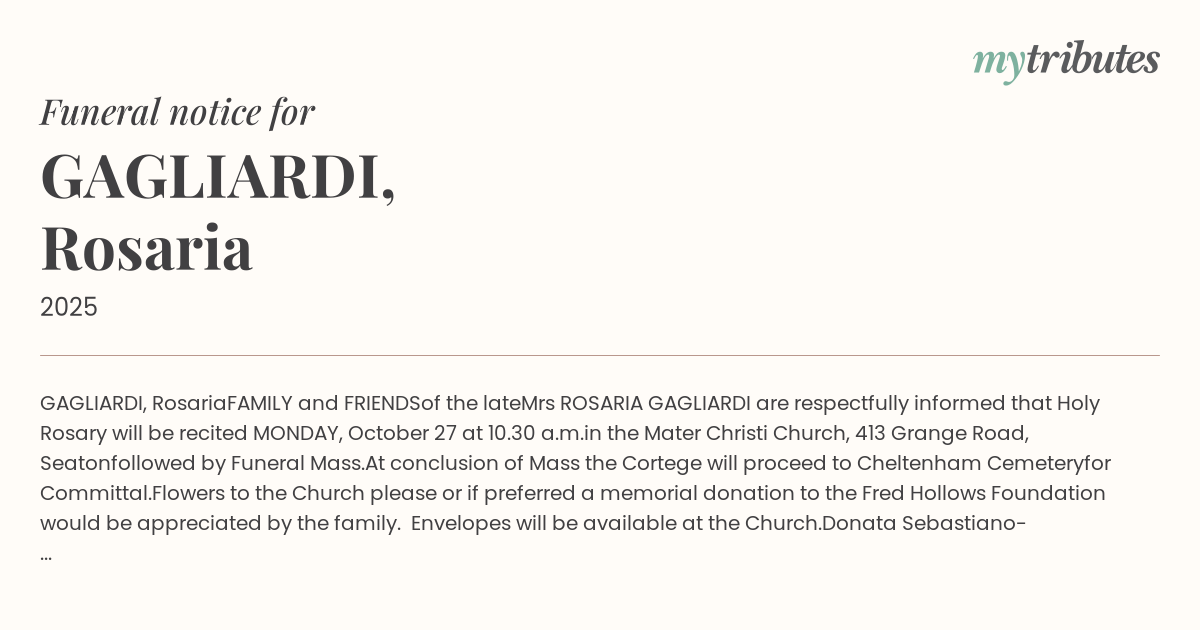 Mrs ROSARIA GAGLIARDI