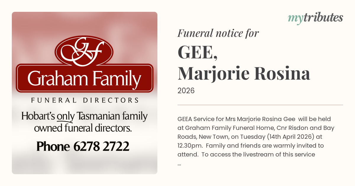 Funeral by : Graham Family Funerals Hobart