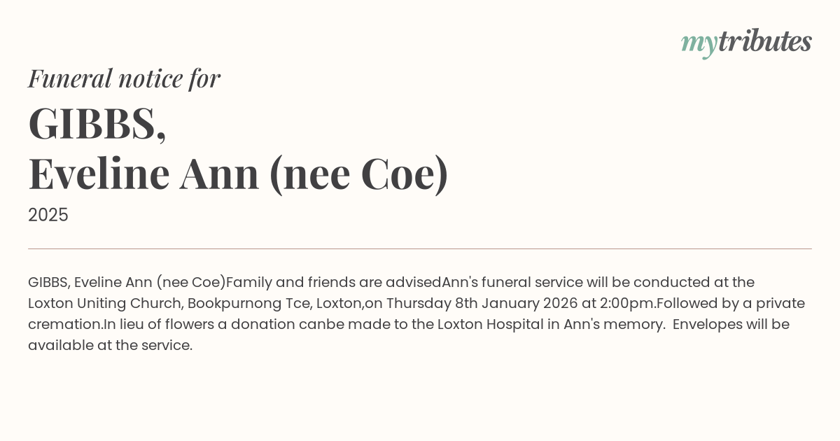will be conducted at the Loxton Uniting Church, Bookpurnong Tce, Loxton,