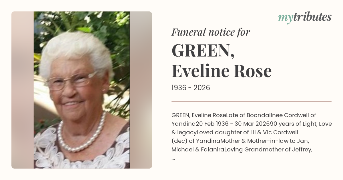 Family & friends are invited to attend our service for Eveline at Gregson & Weight Nambour, Friday 10th April commencing at 12 noon