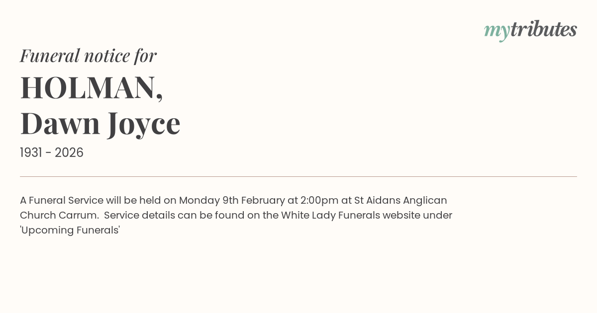 Church Carrum. Service details can be found on the White Lady Funerals website under