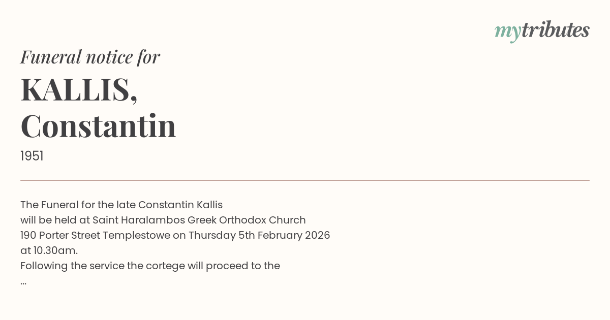Prayers will be offered for Con the night before, Wednesday 4th February