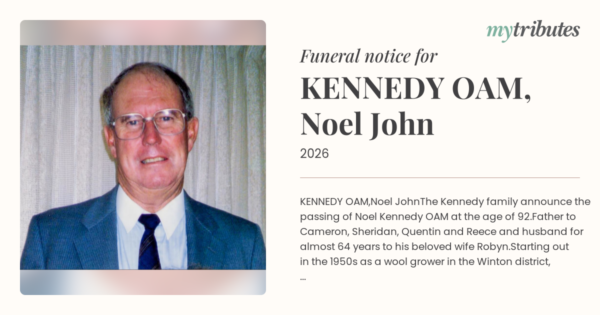 of Noel Kennedy OAM at the age of 92.