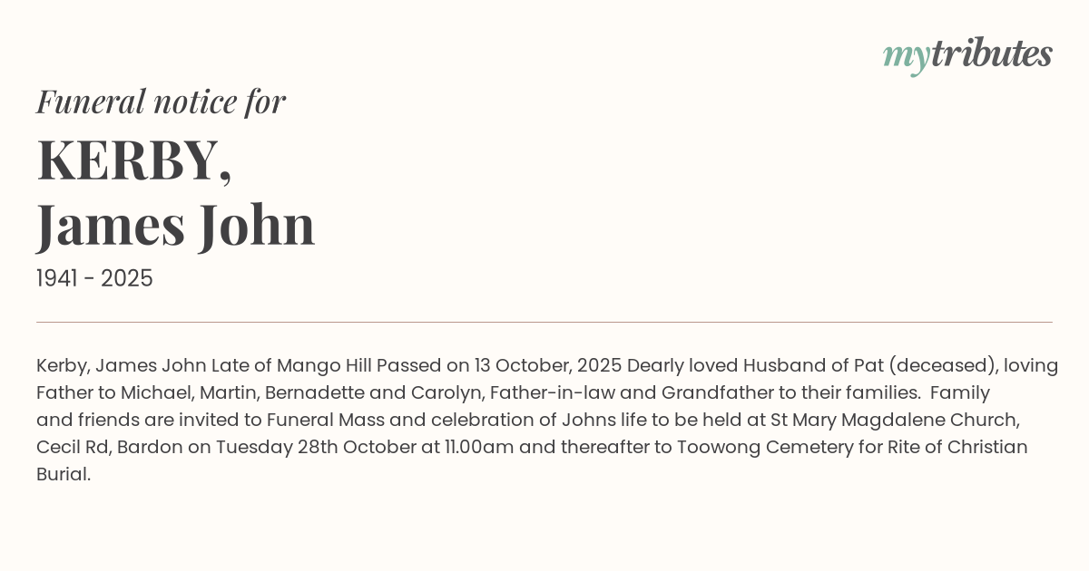 loving Father to Michael, Martin, Bernadette and Carolyn,
